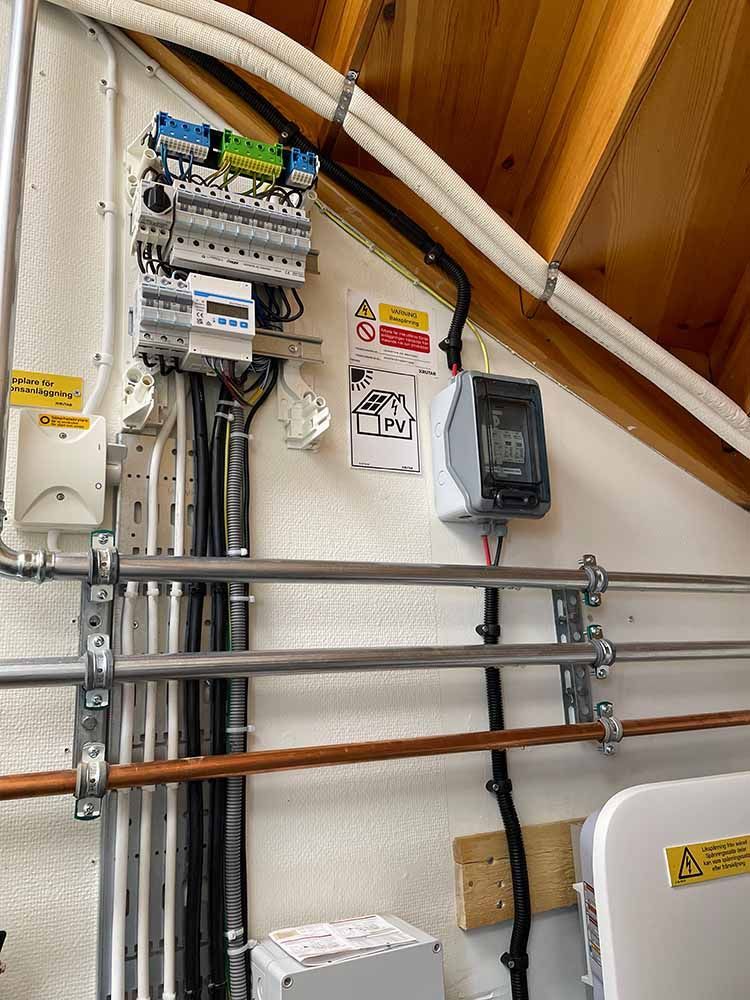 När man bygger solel är det lätt att stirra sig blind på utrustningen som ska installeras. För oss är det minst lika viktigt att anläggningen byggs på ett säkert och fackmannamässigt sätt. Vi arbetar med kvalificerade ställningsbyggare som aldrig fuskar med säkerheten vid arbete på tak. Våra installatörer ser till att anläggningen håller högsta nivå vad det gäller elsäkerhet och att t.ex. alla kabelgenomförningar genom vägg eller tak utförs på rätt sätt.